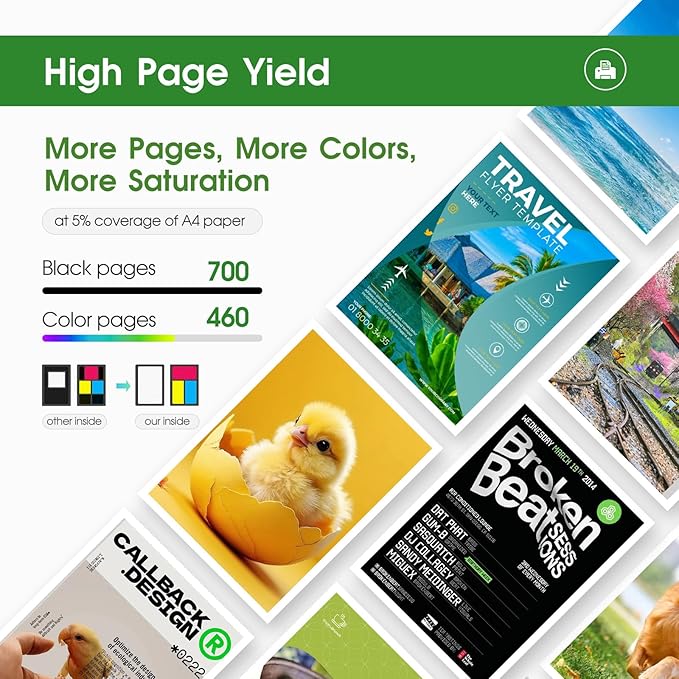 - For HP 64 Ink Page Yield: High-Yield HP 64XL Ink Cartridge Combo Pack; 709 Pages for HP 64XL Black Ink Cartridge, 465 Pages for HP 64 Color Ink Cartridges (at 5% coverage on A4 paper).