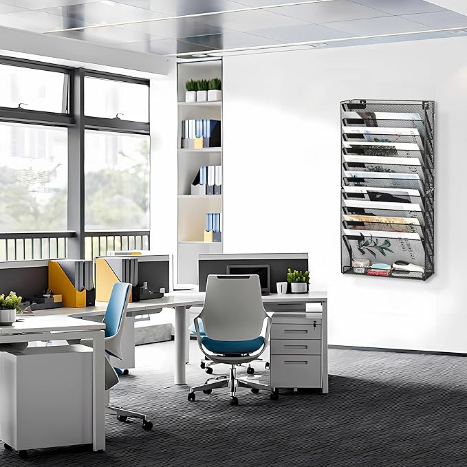 - Metal Mesh Durability: Powder-coated metal file organizer for desk resists rust & oxidation. Holds 5lbs/slot with open-grid dust prevention. Ideal for high-traffic offices.