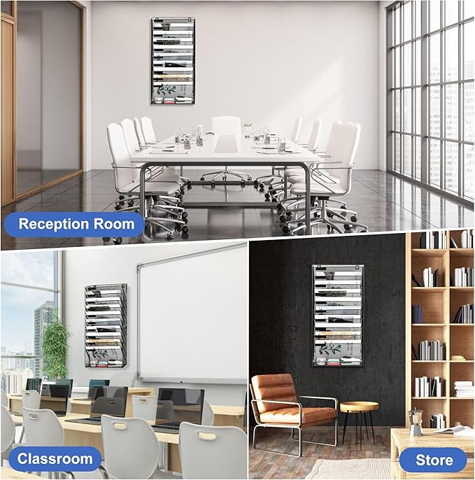 - All-in-One Mail Center: Mail organizer wall mounted stores A4 files, catalogs, outgoing mail. Doubles as brochure display for clinics/workshops. Converts clutter to order.