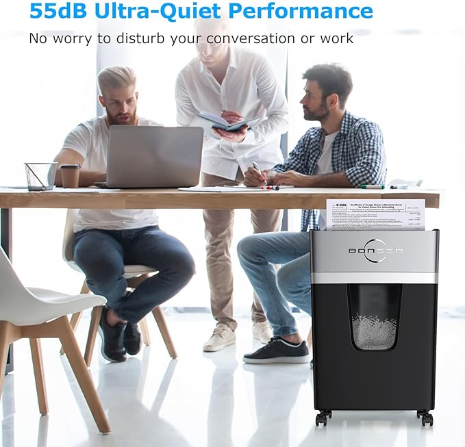 BONSEN 12-Sheet Micro Cut Paper Shredder for Home Office Use, High Security Level P-4/55 dB Ultra-Quiet / 40-Minutes Shredding Shreds Credit Card/Staples, 5.3 Gallons Pullout Bin (S3106)
