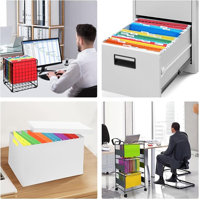 - Widely Application - The hanging file folders with plastic tabs are widely used in a variety of occasions, such as schools, offices, hospitals, and home, etc, You can hang these folders on desk drawers, filing cabinets, storage boxes, or file carts, they will make your work and life more organized.