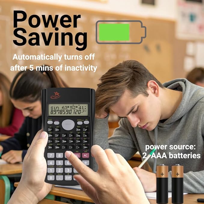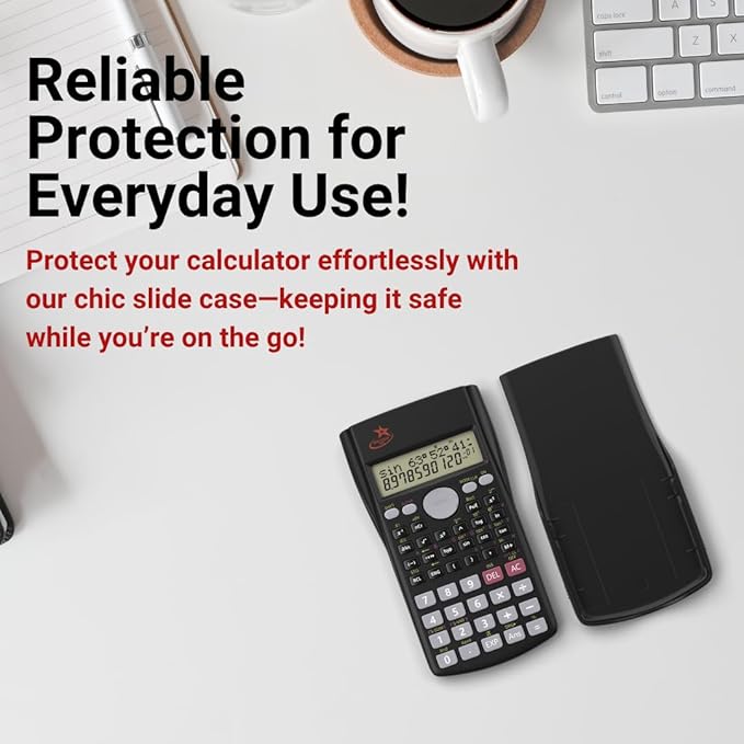 - Compact & Durable: Lightweight, ergonomic scientific calculator, ideal for exams, office, or daily use. Responsive buttons, clear labels, hard cover protection. Uses 2 AAA batteries, 6-month warranty.