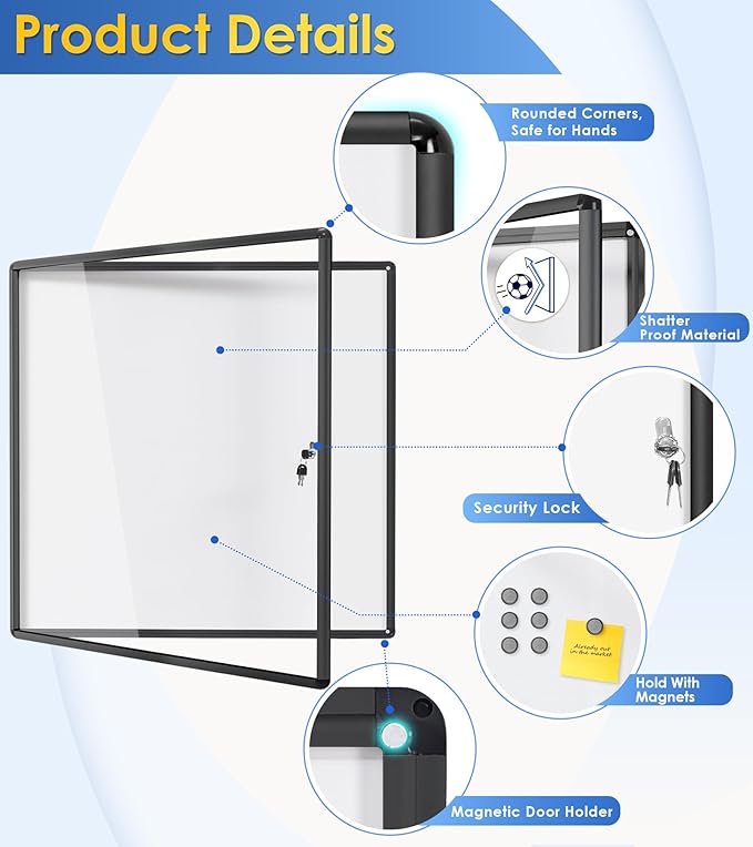 - Versatile Use —Can be used for a variety of purposes, including posting announcements, displaying artwork or photos, and presenting information for public viewing.With a simple and intuitive design ,it's convenient to post and update.