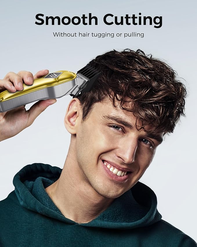 - THOUGHTFUL DESIGN - This haircutting kits adopt ergonomic metal casing with alveolate texture on the back of the handle, which offers sturdy and firm grip for professional barbers and stylists. With large LED display, you could be capble of real-time status of this barber kit. Detachable liner blade makes it easy for cleaning