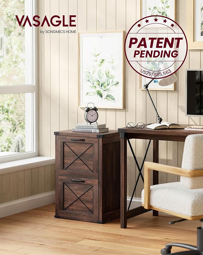 VASAGLE File Cabinet, Filing Cabinet with 2 File Drawers, Printer Stand, Fit A4, Letter Size, Hanging File Folders, Modern Farmhouse Style, for Home Office, Maroon Brown UOFC048K01