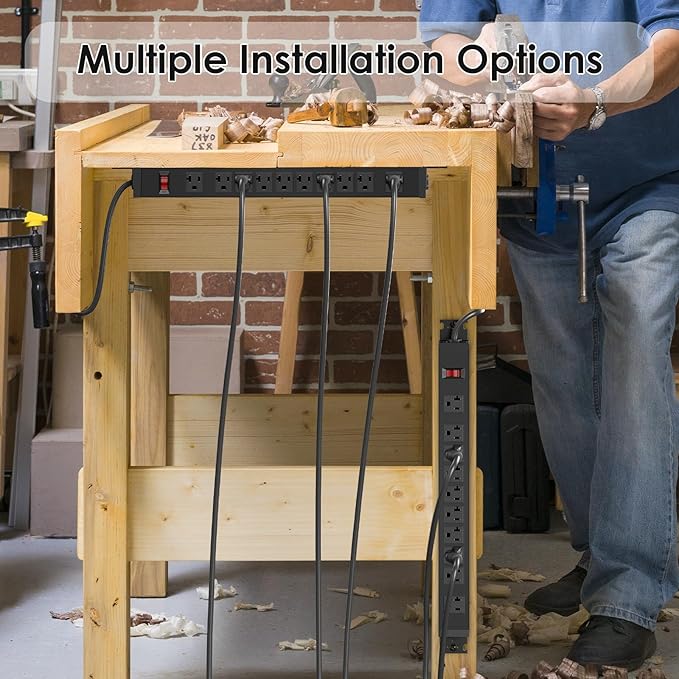 - Multiple Installation Options: The mounting brackets on both sides of the outlet strip can be installed flexibly in four directions, for a variety of scenes. 2 mounting brackets are locked on two sides of power bar when not in use, so they will not take up space and get lost.