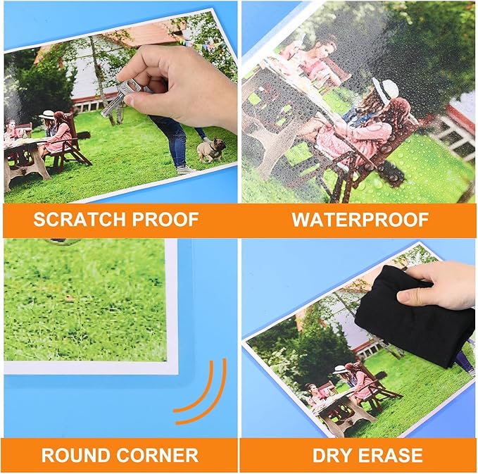 - Premium Material: Crystal clear, glossy sheen, sturdy and Premium material. Laceration resistant, double coating, anti-stain, sturdy and waterproof, protect your document from scratching
