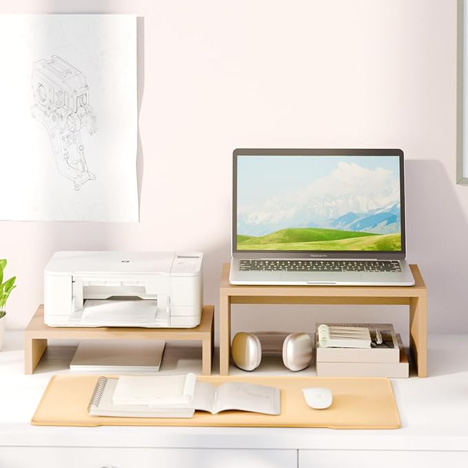 TEAMIX Higher Monitor Stand Riser, Wood Monitor Riser with Storage for Desk Small Monitor Stand TV/Screen/PC/Laptop Riser Computer Stand Desktop Shelf