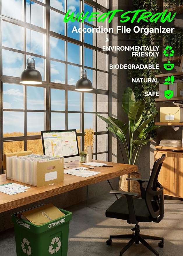 - 【Wheat Straw Material】Ecostash's Wheat Straw Accordion File Organizer are BPA-free, making them safer and healthier compared to plastic and paper file folders. Unlike plastic and paper hanging folders, wheat straw material is sourced from renewable agricultural waste, reducing dependence on petrochemical plastics and forest logging. This helps reduce greenhouse gas emissions, making a collective contribution to protecting the Earth's ecology.