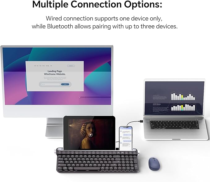 - 【Easy to Connect and More Compatiblity】The dual mode of wired and Bluetooth connection can be switched at will with the function switch button.It can support 3 devices at the same time via Bluetooth wireless connection.Wide compatibility, can be used on iOS,Android,Windows and other devices.Supported operating systems:Windows/ANDROID/ISO/Mac.