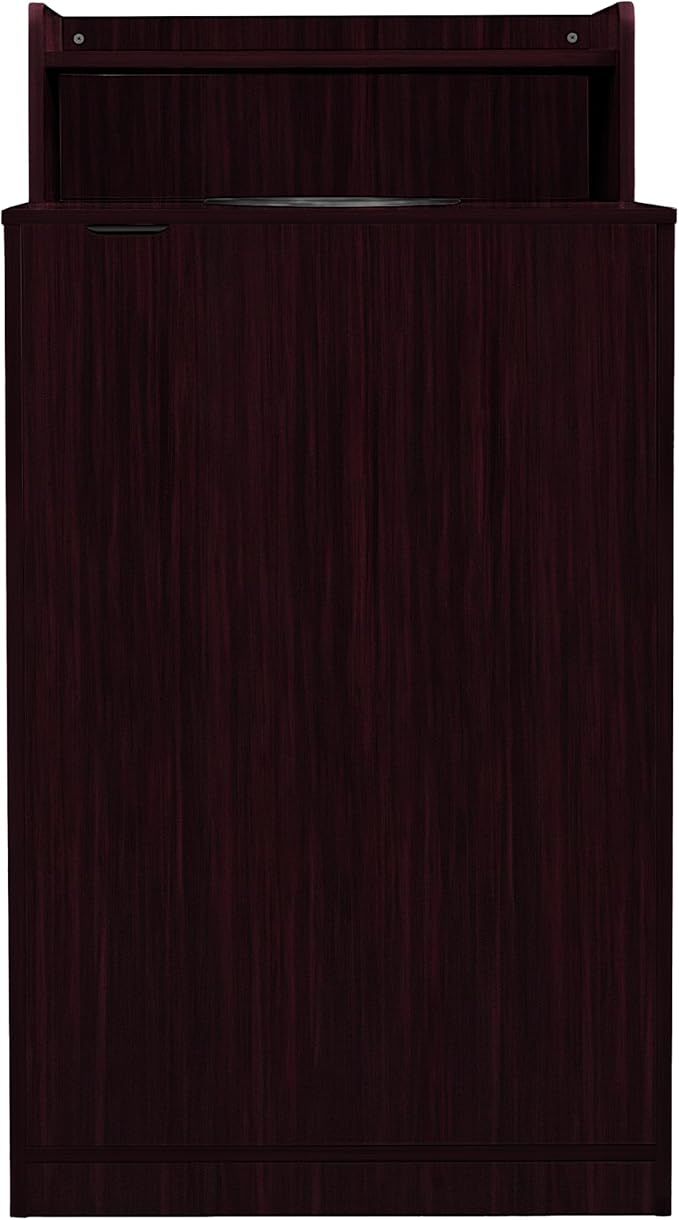 Flash Furniture Dell Trash Can Enclosure with Tray Shelf and 8" Drop Hole, Commercial Grade Trash Receptacle for 32 Gallon Round Cans, Swing Door Access, Mahogany