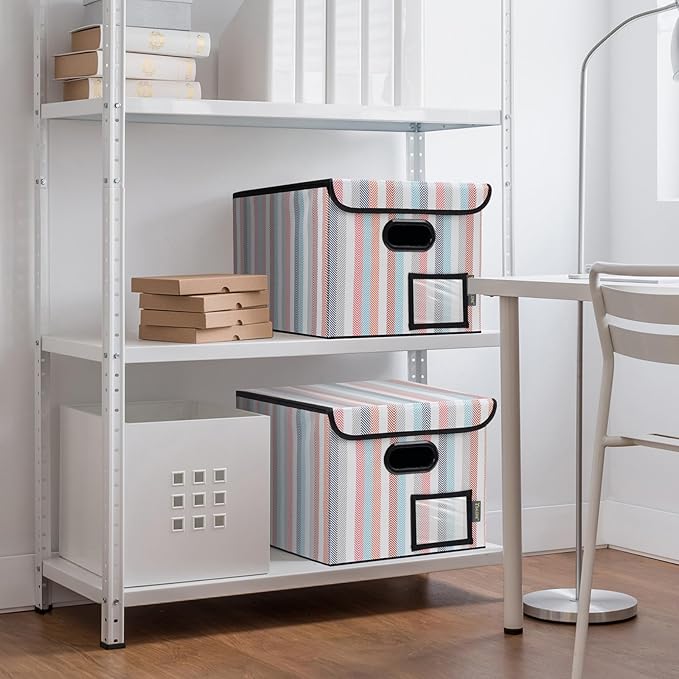 BALEINE File Organizer Box with Lid, Collapsible File Folder Organizer with Plastic Slide, Hanging File Folder Box for Office Document Storage (1 Pack, Color Stripe)