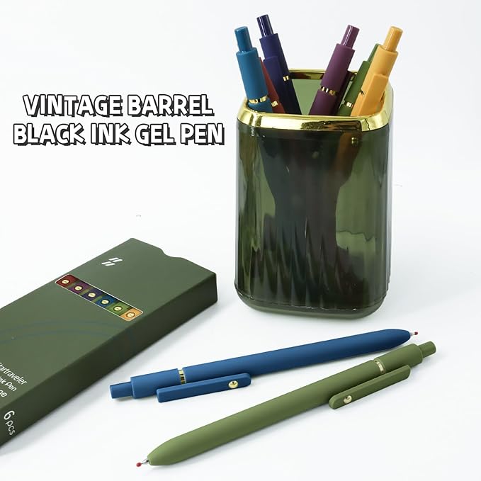 6 Pcs Gel Pens 0.5mm Quick Dry Black Ink Pens Fine Point Smooth Writing Pens, Cute Office and School Supplies Gifts for Women Teacher Students (6 Pcs Vintage Gold)