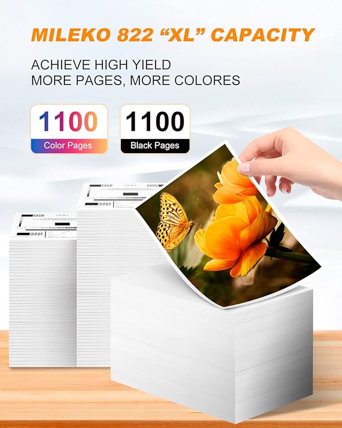 - 5.MILEKO remanufactured for epson 822xl ink cartridges replacements for epson 822xl 822 epson ink cartridges provide clear and vibrant printing