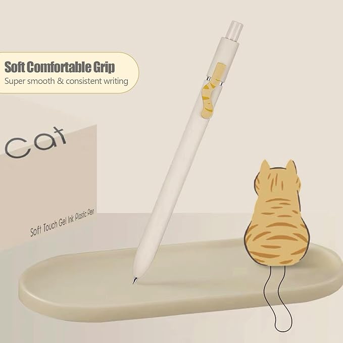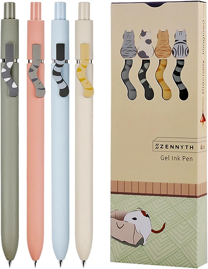 4Pcs Gel Pens, 0.5mm Black Ink Pen Retractable Fine Point Smooth Writing Pens, Aesthetic Office School Supplies, Desk Accessories Nursing Pen for Journaling Note Taking, Small Gifts for Women Men(Cat)