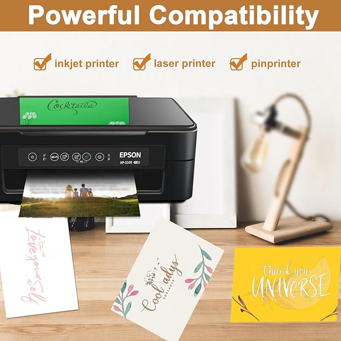 - ▶COMPATIBILITY: Sturdy and versatile, our beige shimmer ivory card stock printer paper is compatible with most types of inkjet, laser printers, die cut machine and cricut cutting machine. Consult your printer manual to ensure it can print on 92lb Cover / 250gsm before ordering