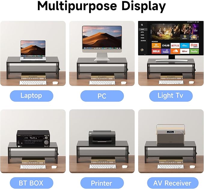 - Multi-functional: You can place a PC display on the monitor stand and store keyboards under the monitor stand to use more space around the monitor. This multi-functional desk stand is recommended for offices, laboratories, and living rooms