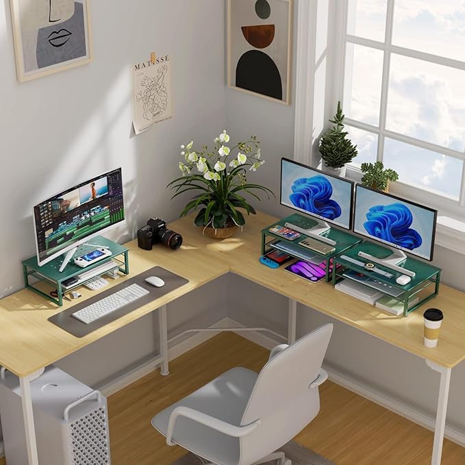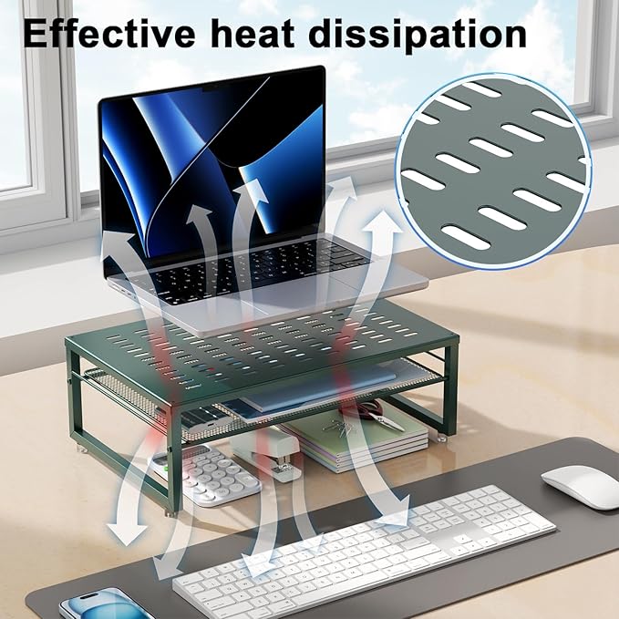 gianotter 2-Tier Metal Monitor Stand Riser, Desk Organizer for Monitor, Office Desk Storage Organizer for Office Supplies (Dark Green)
