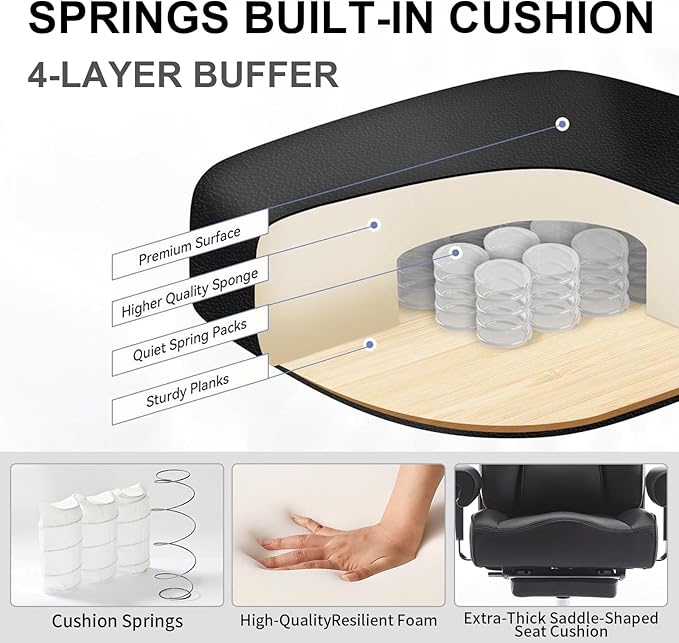 - ERGONOMIC DESK CHAIR FOR LONG HOURS β This chair features adjustable height, armrests, and a reclining back that tilts from 90Β° to 135Β° with customizable tilt tension. HIGH BACK OFFICE CHAIR WITH FOOTREST β The office chair includes a retractable footrest, letting you relax or sit cross-legged while reading. This ergonomic chair works great as a desk chair, gaming chair, or computer chair for all-day use.