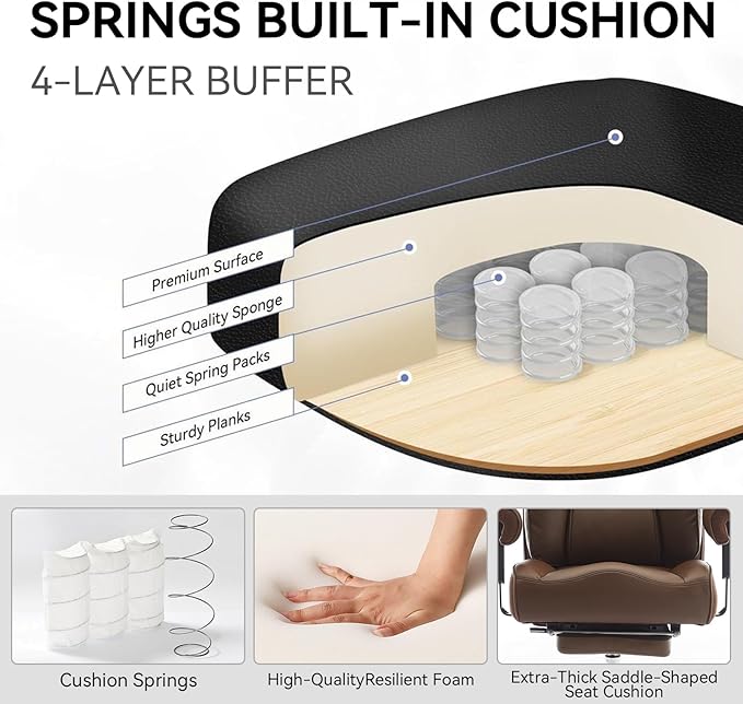 - ULTRA-COMFORTABLE CHAIR :Our ergonomic office chair features extra soft lumbar support and a headrest, along with a specially designed saddle-shaped cushioned seat. Protecting your neck and lower back, the big and tall office chair is ergonomically designed to offer the most comfortable seating experience. If you need a comfortable office chair, Efomao home office chair is your best choice.