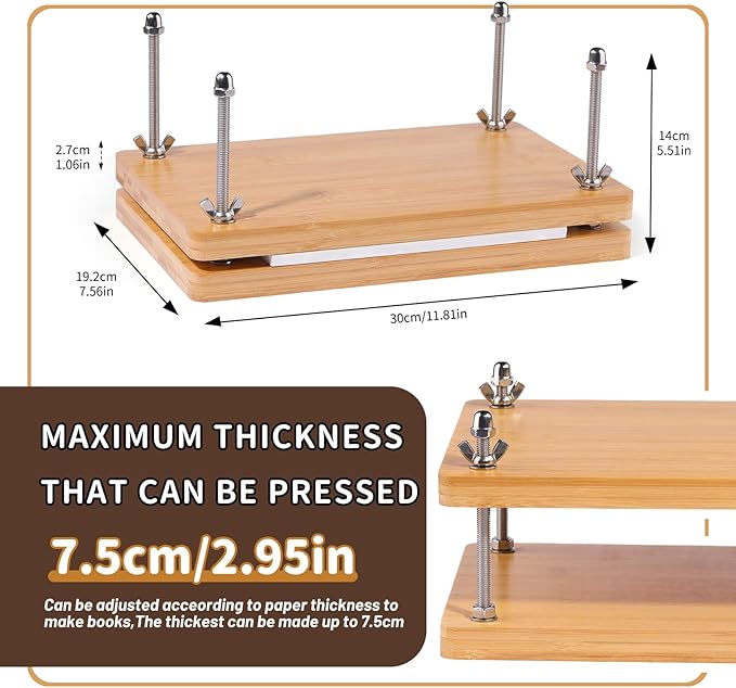 - Durable Bookbinding Tools: The bookbinding press features a 3-layer cross-laminated structure, providing absolute stability and durability for a long-lasting life. The smooth surface and rounded corners ensure an elegant appearance while ensuring a comfortable touch. Approximately 11.6 x 7.9 inches, portable and lightweight, can be carried out at will