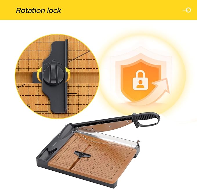 - Secure Clamping and Safety Features: Designed with a safety protect board,ergonomic handle, safety latch, and automatic lift, this guillotine prioritizes your safetyand comfort during use.