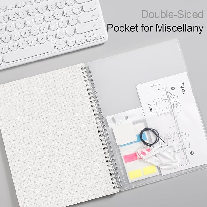 - PRACTICAL LAYOUT: Equipped an elastic band, a self-adhesive pen holder and removable bookmark ruler to keep your notebook organized. Comes with a DIY bookmark with a ribbon for self-attachment to the spiral, serving as a bookmark. Features a double-sided pocket for storing miscellany and 18pcs sticky notes for additional organization and reminders