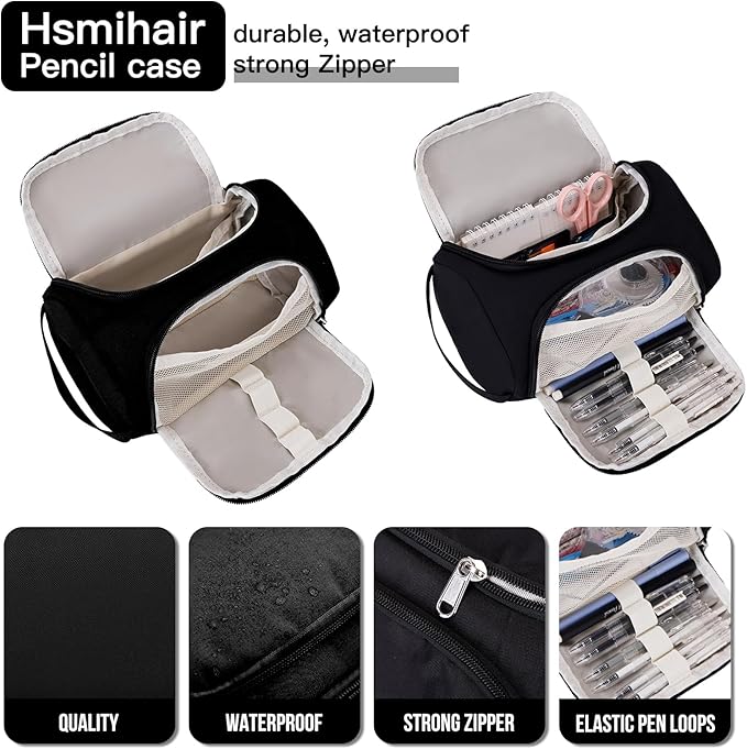 - 【Large Pencil Pouch】Large Storage pencil boxes sophisticated inner structure with elastic loop and multiple compartments, have the ability to store and organize up to 200 pens or pencils