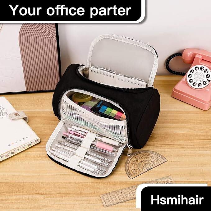 Large Pencil Pouch,Pencil Case Aesthetic,Zipper Pencil Box For Girls Back To School Supplies Emergency Bag Makeup Bag (Black)