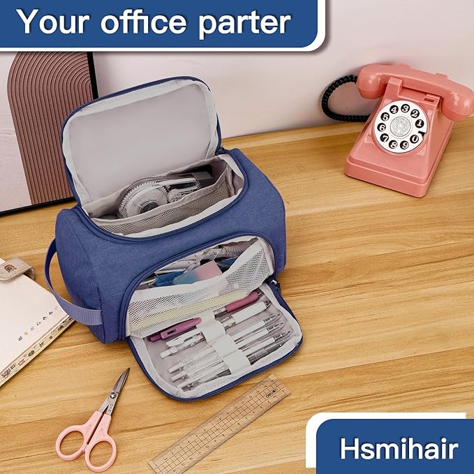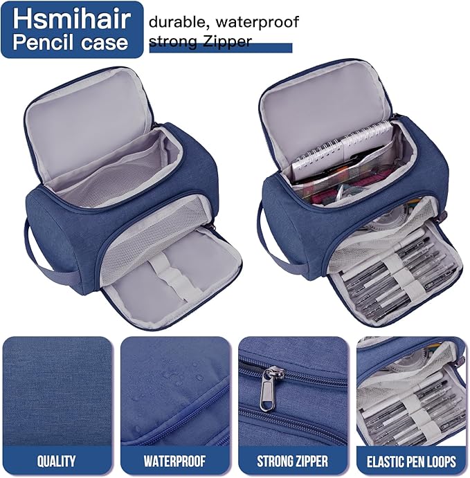 Large Pencil Pouch,Pencil Case Aesthetic,Zipper Pencil Box For Girls Back To School Supplies Emergency Bag Makeup Bag (DeepBlue)
