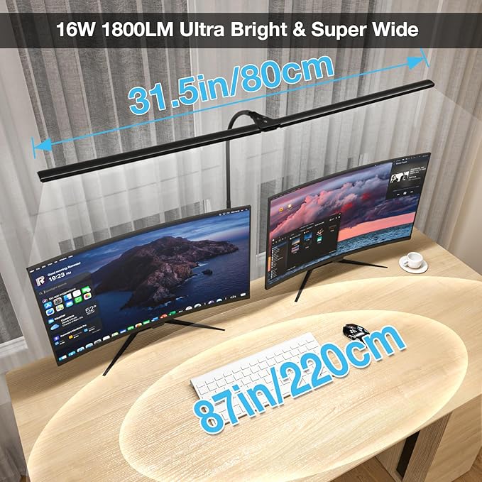 - 360Β° Flexible: led monitor lamp can be easily adjusted 360Β° to avoid direct light on your eyes and reduce eye fatigue.The maximum working height can reach 27 inch overhead with 100 inch lighting area. Perfect for drawing, sewing, crafting, architect, etc