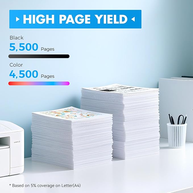 - Yield & Version: 5,500 pages for Black and 4,500 pages Color toner cartridge (A4, 5% Coverage), with High Yield Version 212A.