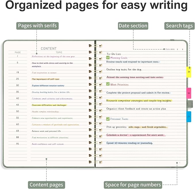- ORGANIZED AND PRACTICAL NOTEBOOK: Our lined spiral notebook features 140 numbered pages and 4-page blank table of contents. In a large B5 size 7.6" Γ 10", providing ample writing space while remaining lightweight and easy to carry