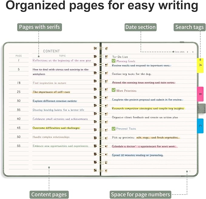 - ORGANIZED AND PRACTICAL NOTEBOOK: Our lined spiral notebook features 140 numbered pages and 4-page blank table of contents. In a medium A5 size 5.7" Γ 8.3", providing ample writing space while remaining lightweight and easy to carry