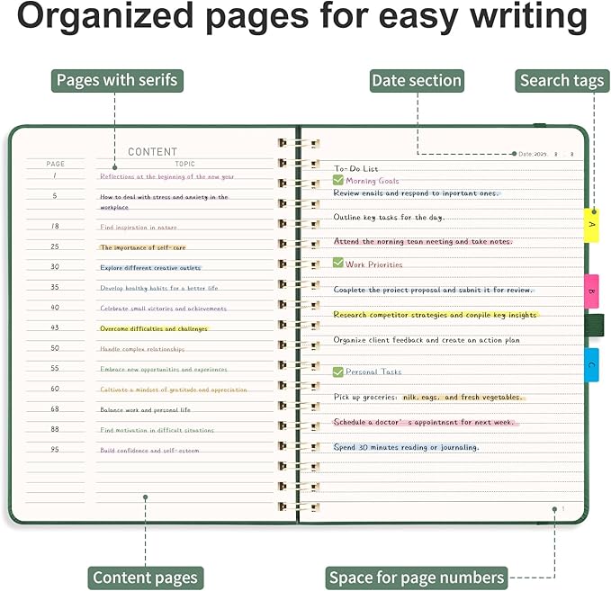 - ORGANIZED AND PRACTICAL NOTEBOOK: Our lined spiral notebook features 140 numbered pages and 4-page blank table of contents. In a large B5 size 7.6" Γ 10", providing ample writing space while remaining lightweight and easy to carry