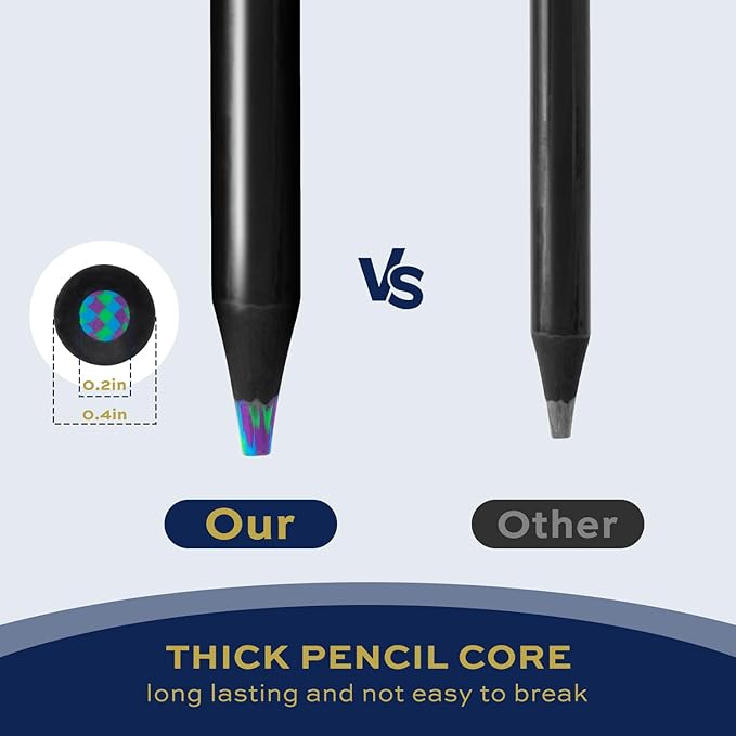 - 【Jumbo Durable Coloring Pencils】Made from sturdy ebony wood, the rainbow colored pencils are designed to resist breakage and ensure long-lasting use. Featuring an extra-thick 0.2 inch core and a 0.4 inch wider shaft, they provide superior durability and a comfortable grip. Ideal for coloring, sketching, and intricate artwork, these pencils offer enhanced control for a seamless creative experience.