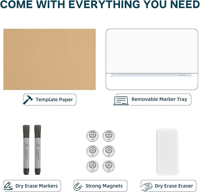 - 【ENVIRONMENTAL & LONG-LASTING】: The strong durable tempered glass surface resists stain and ghosting. Designed with 4mm thickness, rounded corner, and smooth edges. Cleaner, safer, and longer-lasting than traditional whiteboards.