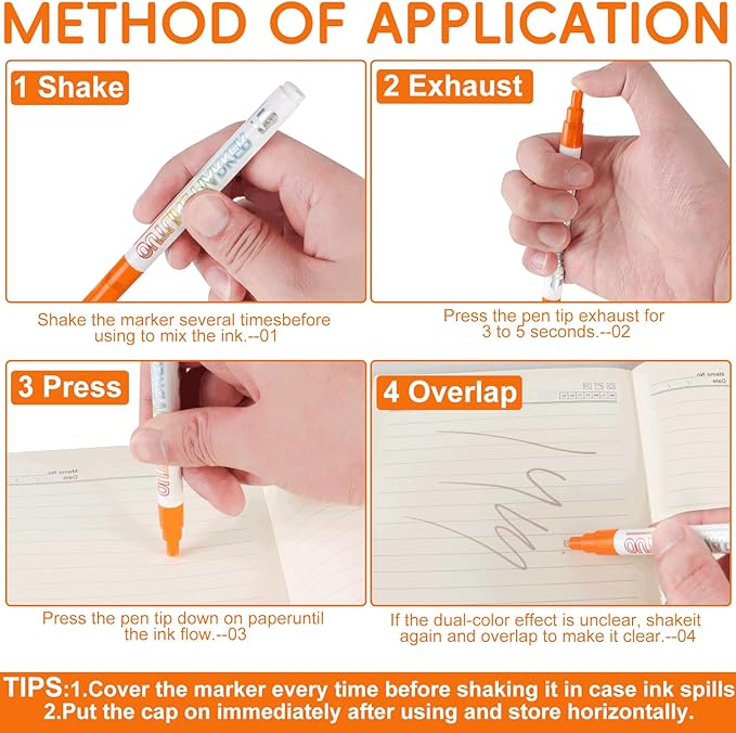 - Unique Glitter Pen: This shimmer marker set features 24 vibrant metallic colors with a 2mm medium tip. The self-outline markers create vivid metallic silver lines with colored borders through a unique technology that generates striking dual-color effects. The ink adheres well for bright, clear lines and standout designs.