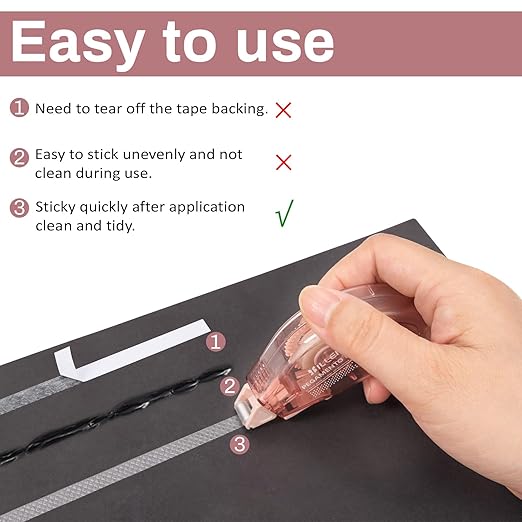 - Adhesion: This tape roller is not a permanent adhesive and can be pasted repeatedly. For stronger adhesion, you can paste it multiple times on the pasted part