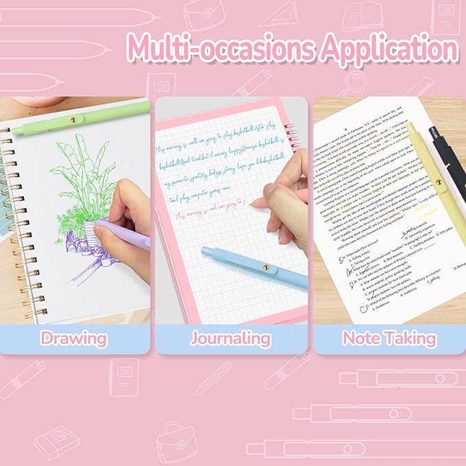 - Vibrant Colors: The colored pens come in 6 different vibrant inks, and the pen barrel matches the ink color. Whether for journaling, note-taking, drawing, or writing, you can find the color you need instantly