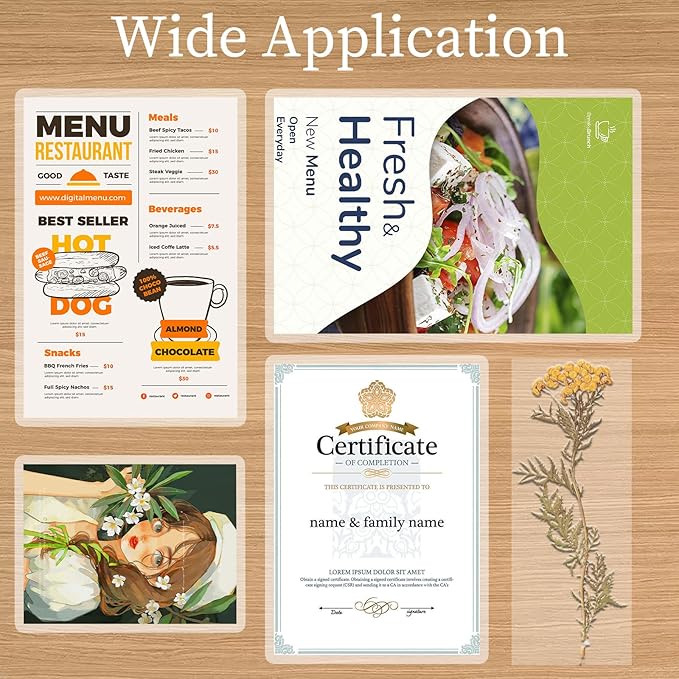 - 😊【Wide Applicability】Compatible with all thermal laminators. Not only for office work, but also for crafting. Very suitable use for important documents, certificates, photos, menus, invoices, decorative cards, logos, etc.