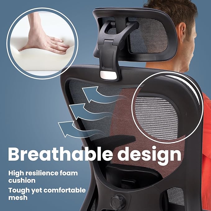 Ergonomic Office Mesh Chair, High Back Swivel Comfty Desk Chairs- 3D Armrest Adjustable Lumbar Support Capacity 400lbs and Headrest Wide for Home & Office, Bedroom (Black)