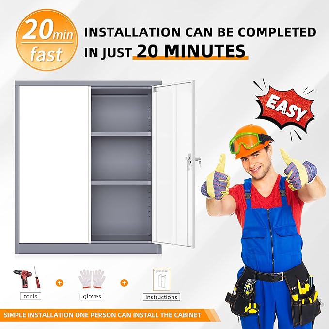 - 『EASY TO ASSEMBLING』42 inch×36 inch×18 inch (H x W x D). 2 wing doors with a 180°opening angle. The garage storage cabinets is knock-down structure. The package comes with detailed assembly instructions, easy to assemble.