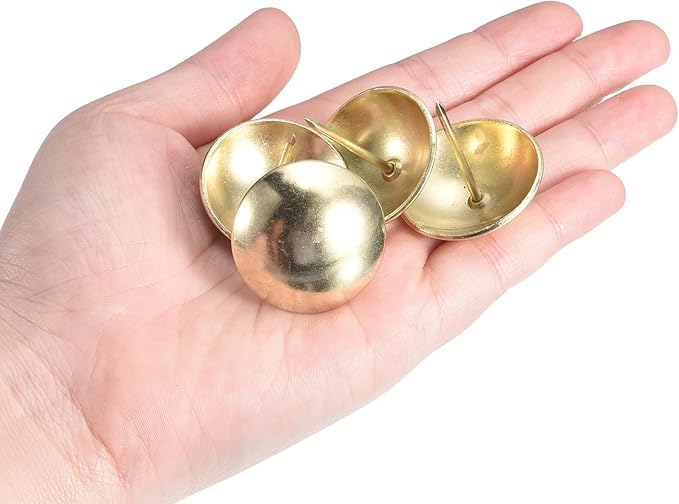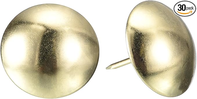 - Specifications: Material: Carbon steel; Color: Gold; Diameter of nails head: 30mm/1.19inch; Shank length: 30mm/1.182inch; Package Content: 30Pcs x Upholstery Tacks Nail Pins