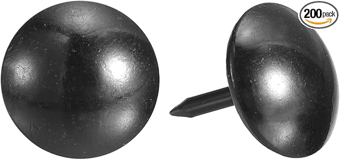 - Specifications: Material: Carbon steel; Color: Black; Diameter of nails head: 11mm/0.44inch; Shank length: 13mm/0.512inch; Package Content: 200Pcs x Upholstery Tacks Nail Pins