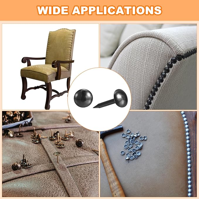 - Material: These furniture upholstery tacks are made of metal and have an electroplated finish. They are smooth to the touch, sturdy, and free of burrs, making them suitable for decorative use in homes.