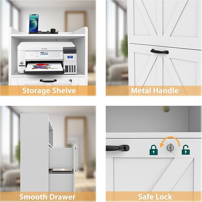 - 【Large storage cabinet】Dimensions: 24''L*15.6''W*38.4''H, with 2 large wooden drawers, 1 open storage shelf & 1 wooden desktop which weight capacity of 150 lbs. You can also use it as a printer stand to save space. The file cabinet with lock provides added privacy and security for your personal items.