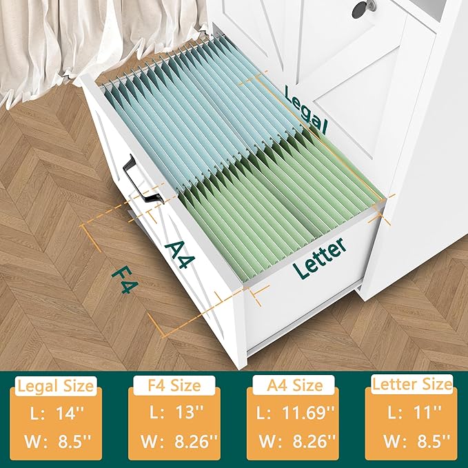 - 【Flexible File Storage】It features two smooth-opening drawers with ball-bearing slides to accommodate letter, legal and A4-sized documents. With the hanging bars removed, this wood file cabinet can also be used as a storage cabinet for boxes, books and other items.