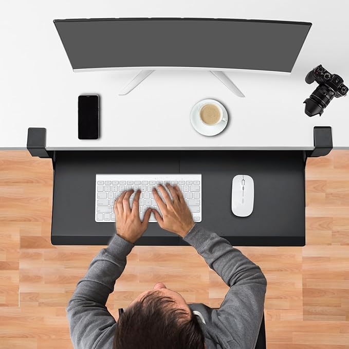 - Smooth Gliding Tracks - Retractable smooth sliding rail design allows the desk drawer to glide smoothly forward and backward. It encourages you to keep your arms and wrists in a neutral position and aids in the prevention of injuries caused by poor posture. Simply slide the tray under your desk when not in use and quickly pull it out when you need more space.