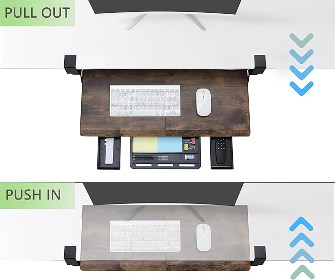 - Smooth Gliding Tracks - Retractable smooth sliding rail design allows the desk drawer to glide smoothly forward and backward. It encourages you to keep your arms and wrists in a neutral position and aids in the prevention of injuries caused by poor posture. Simply slide the tray under your desk when not in use and quickly pull it out when you need more space.